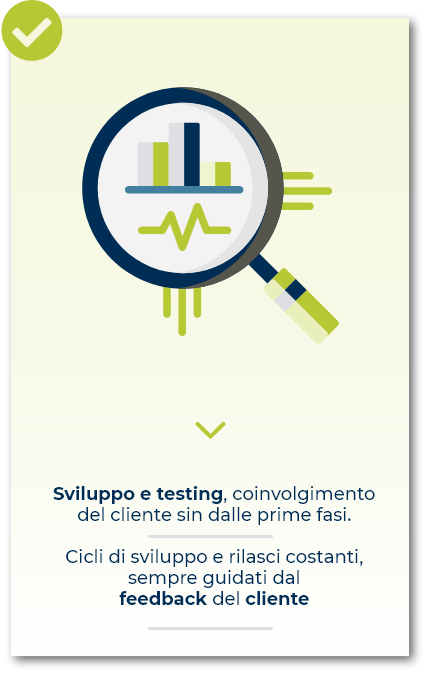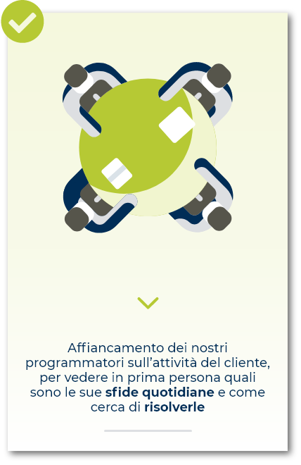 Ti affianchiamo sui progetti custom di sviluppo e integrazione informatica: dall’analisi dei requisiti alla realizzazione del prodotto finito.